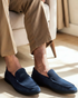 Les mocassins classiques en daim à semelle noire revisitent avec élégance un modèle intemporel. Confectionnés en daim de première qualité, ils présentent une silhouette facile à enfiler, une semelle intérieure rembourrée et une semelle noire distinctive qui apporte contraste et modernité à ce design classique.